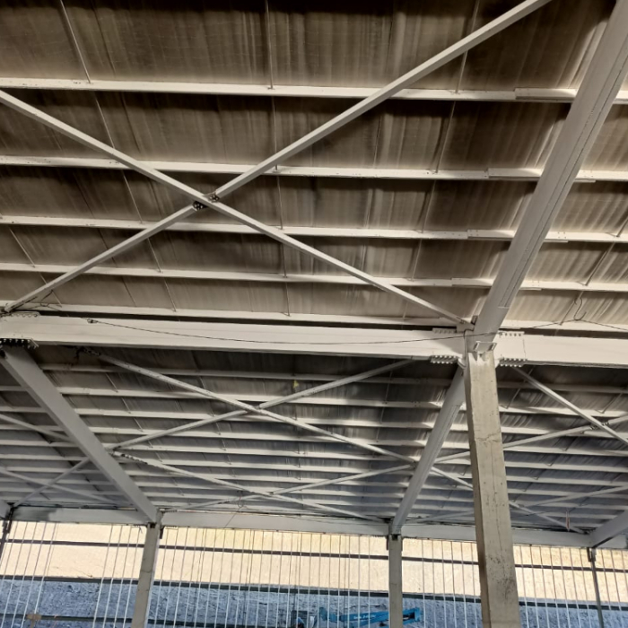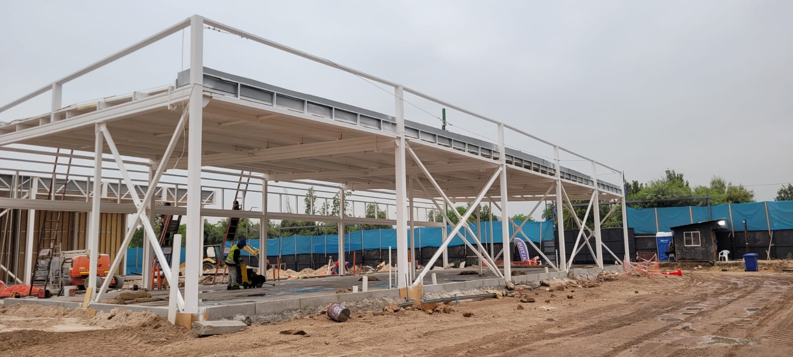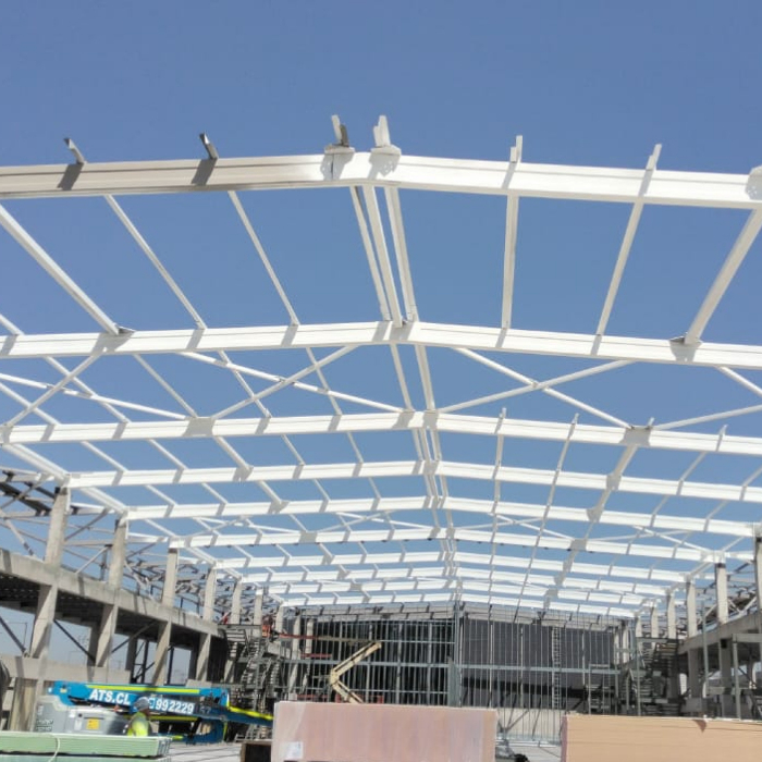 Cliente: Sociedad constructora TERREX S.A. Dirección: Temuco. Contrato: Montaje de estructura metálica, montaje de cubierta y revestimiento, aplicación de pintura anticorrosiva, aplicación de pintura intumescente, aplicación de pintura epóxica, aplicación de pintura anti condensante, aplicación de topping de esmalte sintético blanco opaco. Superficie: 3680 m²